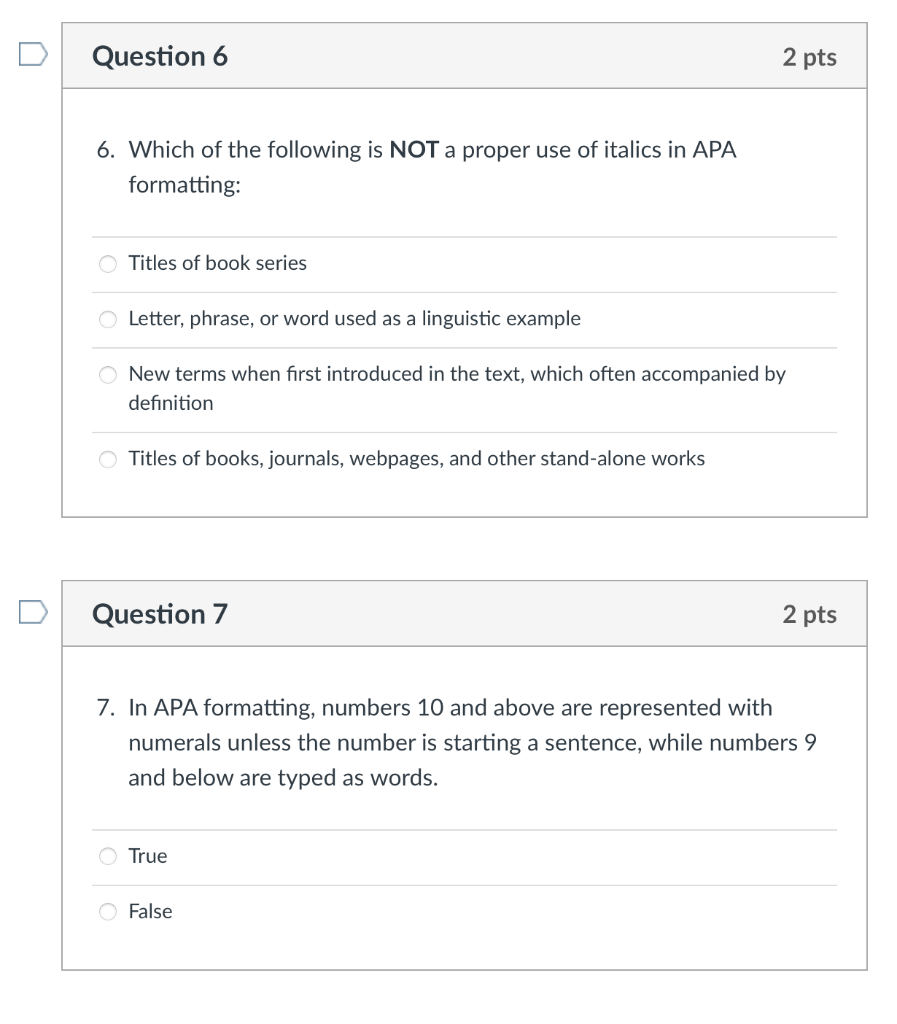 1 Which Of The Following Applies To Apa Style Basic Chegg Com